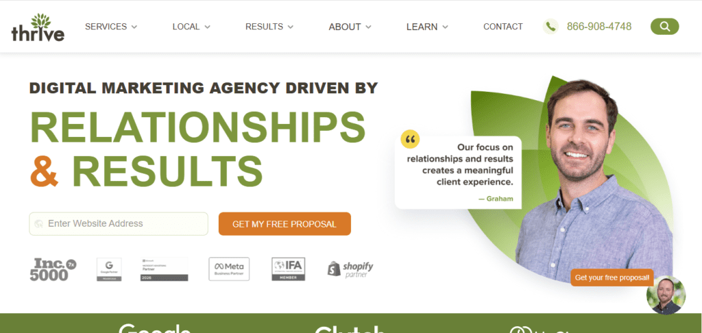 Thrive provides SEO, web design, and PPC services under one roof. Their approach works well for businesses looking for a full-service partner without managing multiple vendors.