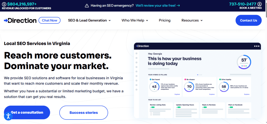 Direction specialises in local SEO strategies, especially for legal, healthcare, and home service brands. They focus on improving local visibility, map rankings, and location-based conversions.