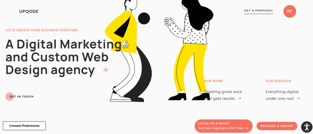 UPQODE is a BBB-accredited web design and development agency based in Nashville’s South District, with a team of around 40 professionals. They are particularly well regarded for technical reliability, clients in industries such as healthcare, finance, and logistics consistently highlight the quality of their builds and the transparency of the agency’s communication throughout a project.