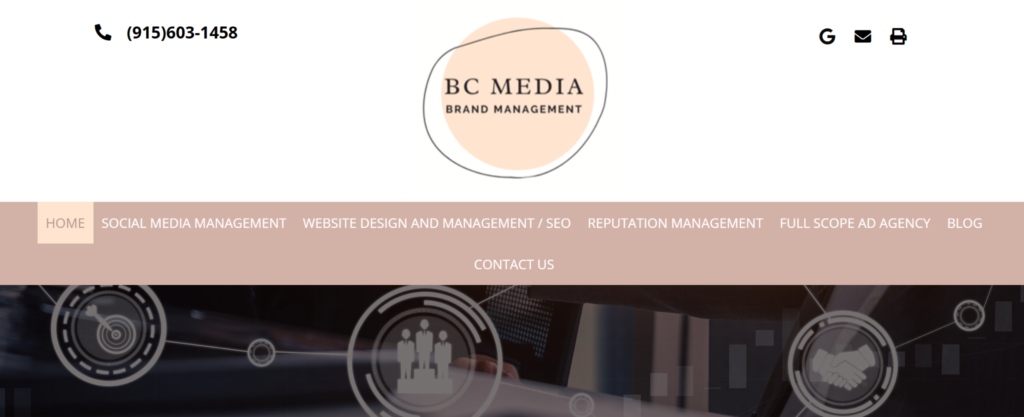 BC Media El Paso operates as a full-scope advertising agency with a digital marketing arm focused on SEO, social media management, and web presence. They describe their work as building marketing plans that promote a business effectively, covering digital as well as traditional channels including TV, radio, print, and outdoor.