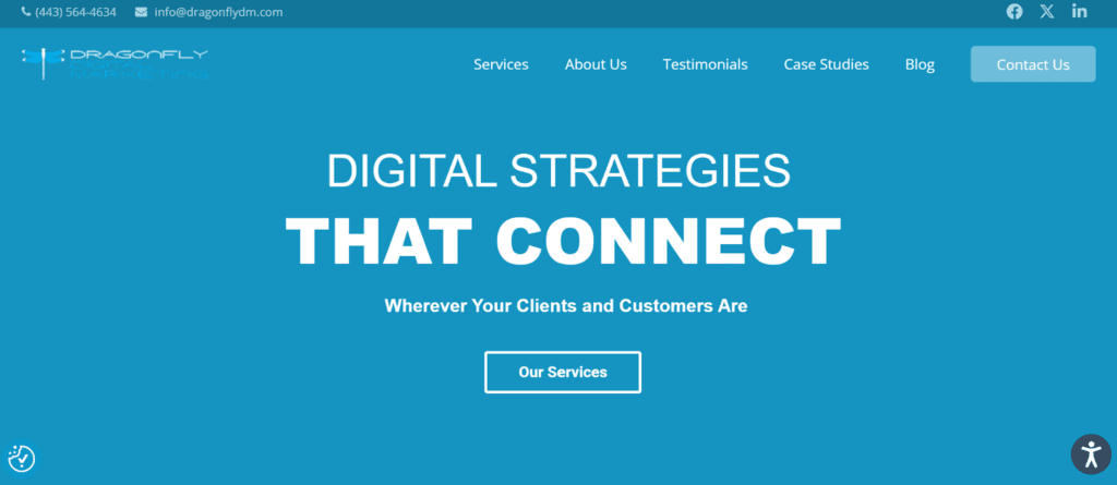 Dragonfly Digital Marketing focuses on sustainable SEO strategies for small and mid-sized businesses. Their strength lies in long-term organic growth rather than short-term paid tactics. They’re particularly effective for local service businesses, law firms, medical practices, home services, that need to rank in competitive Baltimore and Annapolis markets. Their content strategies prioritise relevance and authority-building over volume..