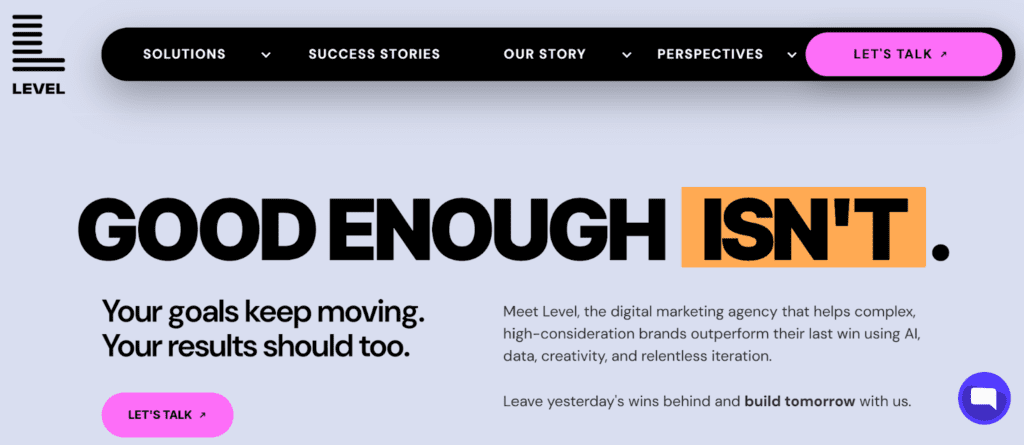 Level has built a strong reputation in B2B performance marketing. They’re particularly well-suited to technology companies and SaaS businesses that need lead generation strategies tied to pipeline metrics. Their approach centres on data-driven paid media and conversion optimisation. If you’re running complex multi-touch campaigns across LinkedIn, Google, and retargeting platforms, they have the infrastructure to manage and optimise at scale.