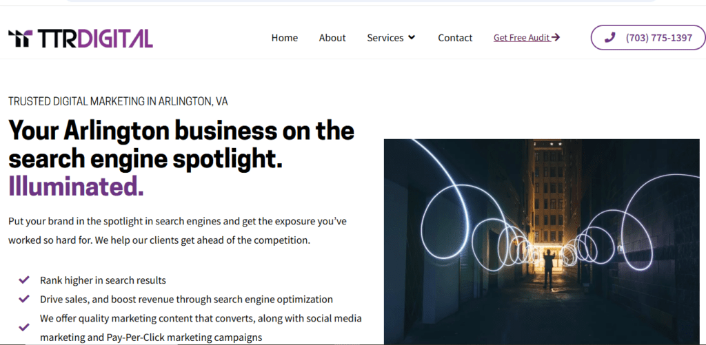 TTR Digital Marketing provides Arlington businesses with SEO, PPC advertising, and digital strategy through a data-driven approach backed by the founder’s MIT graduate and scientific background. The agency emphasizes results measurement and ROI tracking over creative awards.