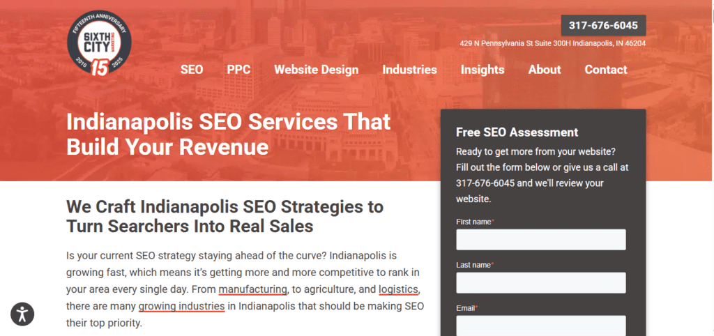 Sixth City also provides website design and pay-per-click services alongside its core SEO offerings, making it a capable partner for businesses seeking integrated digital marketing support. Its emphasis on ROI transparency and data-backed execution makes it one of the more credible SEO options in the Indianapolis market.