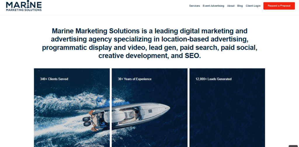 This is an agency that specializes in marketing & advertising for boat accessory suppliers, boat builders, boat cleaning supplies, boat clubs, boat davit & lift companies, boat dealerships, boat loan lenders, boat manufacturers, boat rental companies, and more.