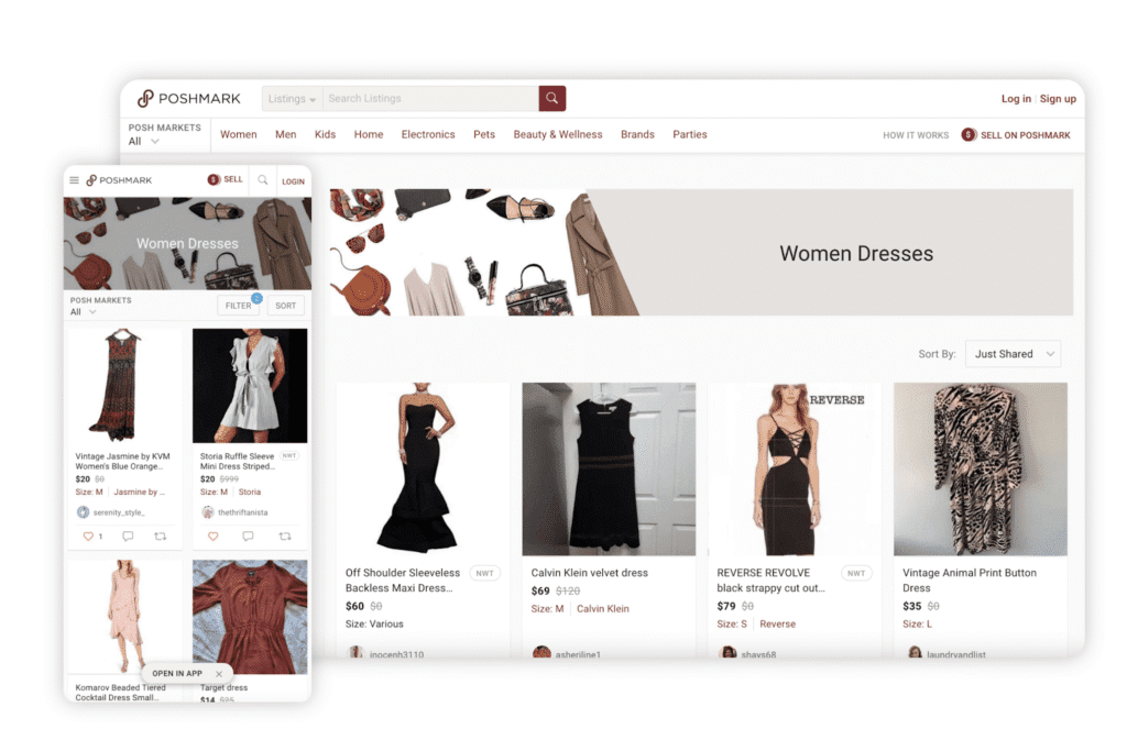 Poshmark turns selling clothes into a social experience. It’s built for fashion sellers targeting style-conscious buyers hunting deals on name brands.