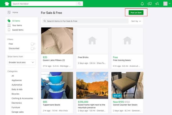 Why it works: Nextdoor verifies addresses, so you’re selling to real people in your immediate area, often within a few blocks. This dramatically reduces no-shows compared to Facebook Marketplace.