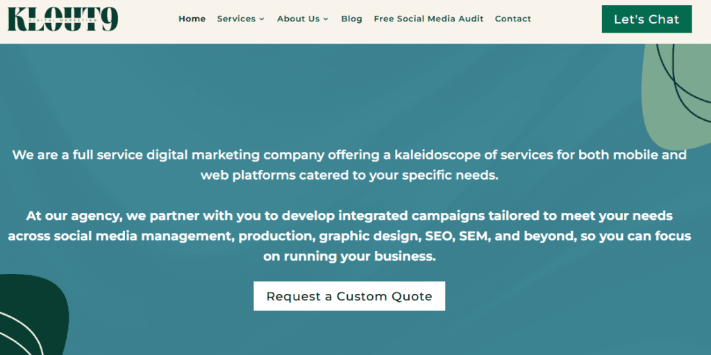 Klout 9 is a digital marketing agency based in Lafayette, Louisiana, established in 2012. The company specializes in enhancing brand visibility and engagement through a variety of services, including social media marketing, videography, website development, and search marketing.